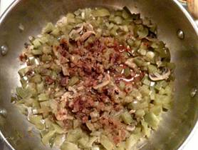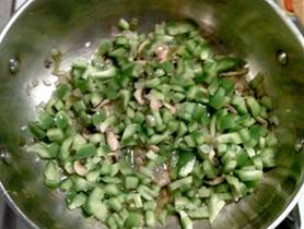 Adding the green pepper.