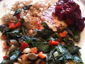 Chard with Peppers and Mushrooms over Rice |
